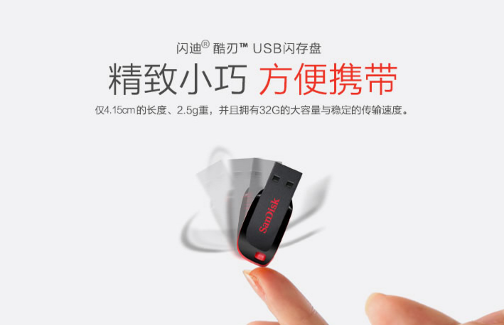主體品牌SanDisk系列酷刃顏色黑紅型號SDCZ50-016G-Z35外殼材質(zhì)塑料特性獨特設(shè)計精致小巧,便于攜帶,五年質(zhì)保,品質(zhì)無憂規(guī)格重量(g)2.5g鑰匙孔無鑰匙孔接口類型USB2.0尺寸(mm)41.50mm*17.60mm*7.40mm容量16GB指示燈無指示燈包裝清單16G閃存盤 × 1