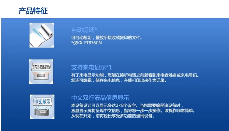 參數(shù) [品牌] 松下(Panasonic) [型號] KX-FT876CN [商品毛重] 3.5kg